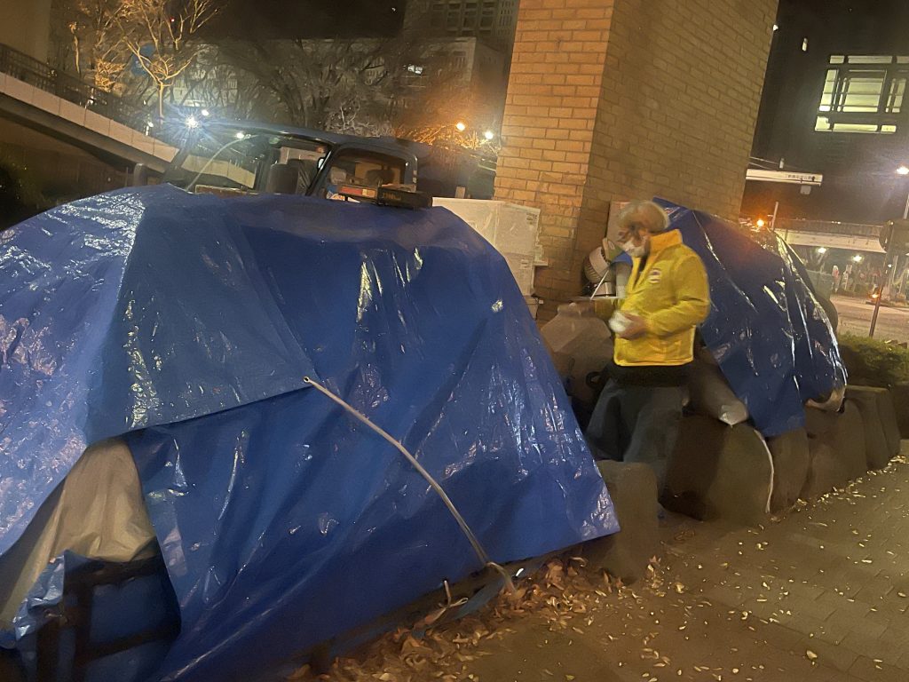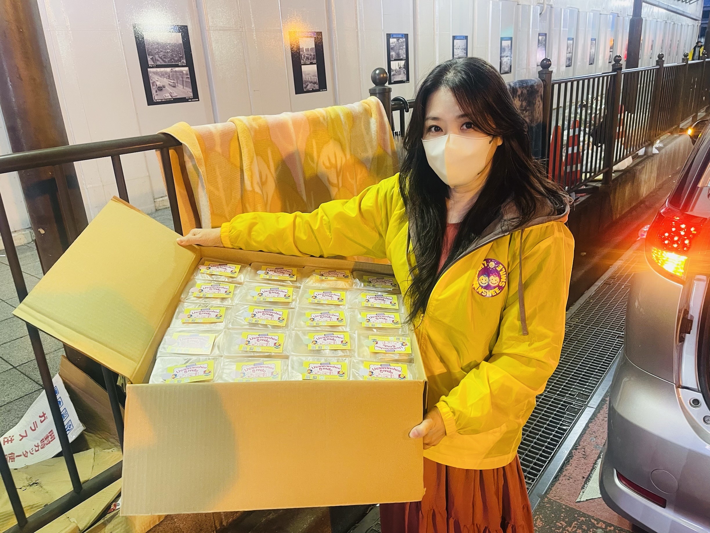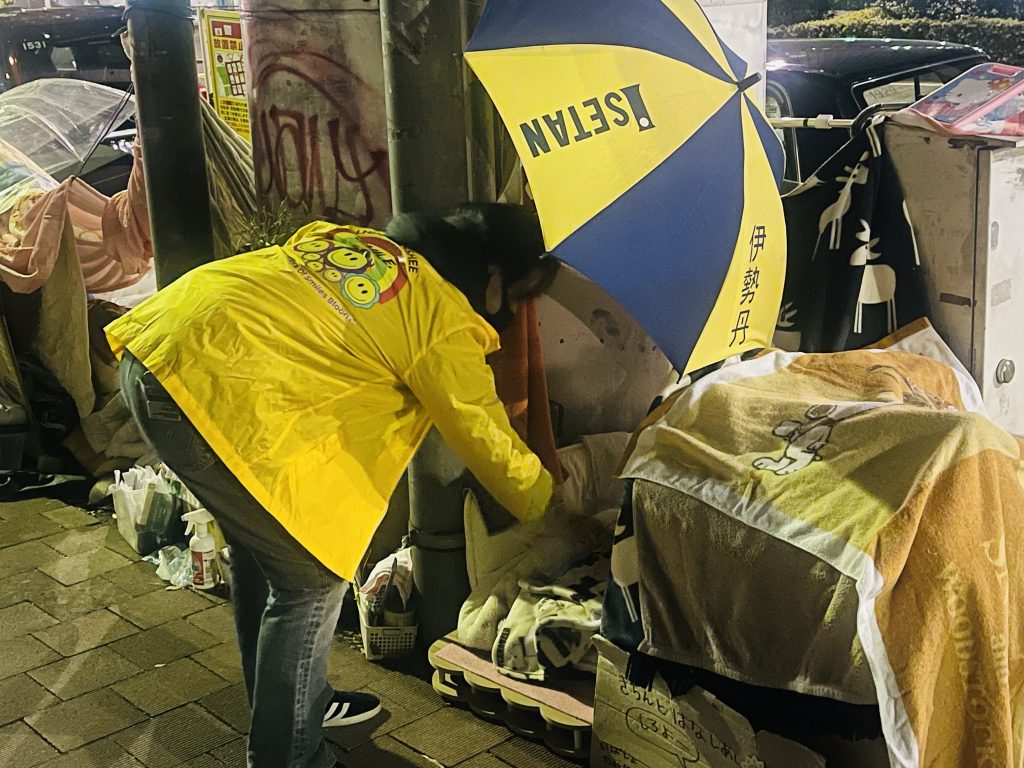 新宿某所にてラナンシースマイル代表とスタッフでホームレスの方たちにお菓子をお配りしました。